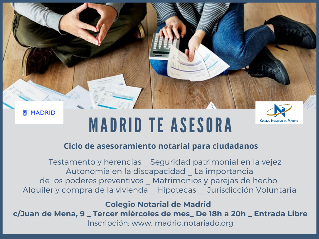 EL COLEGIO NOTARIAL DE MADRID Y El AYUNTAMIENTO DE MADRID ponen en marcha la CUARTA EDICIÓN de 'Madrid, tu notario te asesora', ciclo de asesoramiento notarial para ciudadanos.