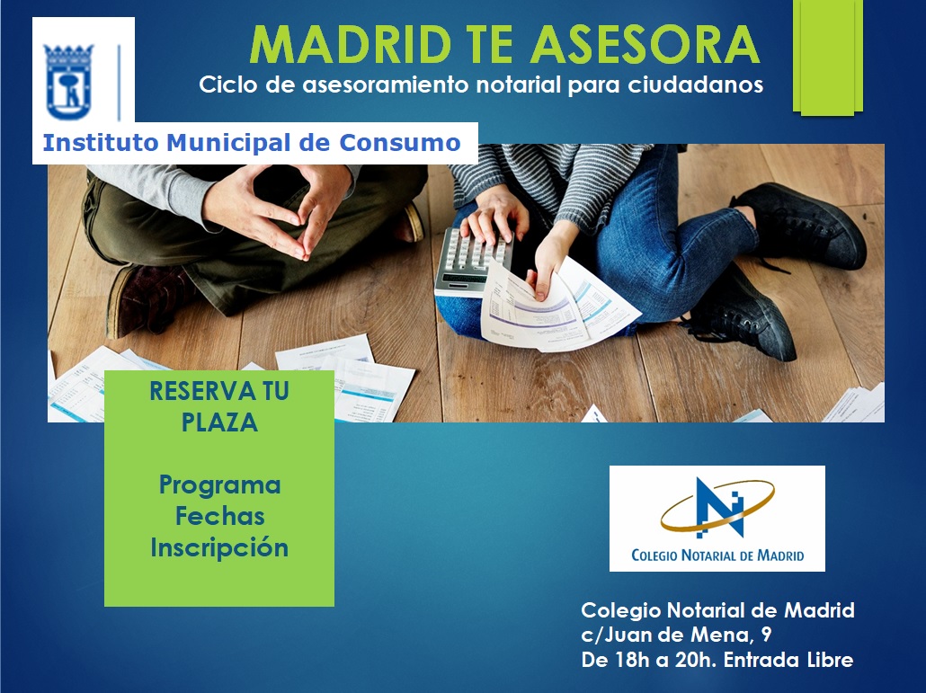 El Instituto Municipal de Consumo del Ayuntamiento de Madrid y el Colegio Notarial de Madrid ponen en marcha un nuevo ciclo de asesoramiento notarial para ciudadanos que comenzará el próximo 18 de enero de 2023, a las 18 horas.