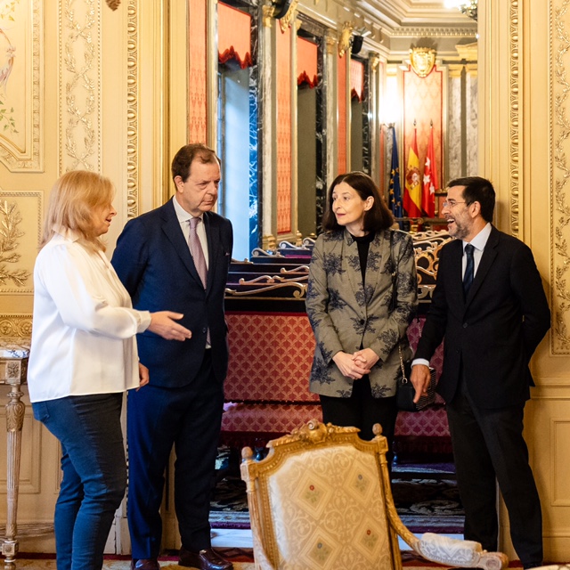 Acompañadas por los notarios Vicente de Prada y Pedro Armas, miembros de la Junta Directiva, Sanz y Del Olmo han visitado el histórico Colegio Notarial y han celebrado un desayuno de trabajo.